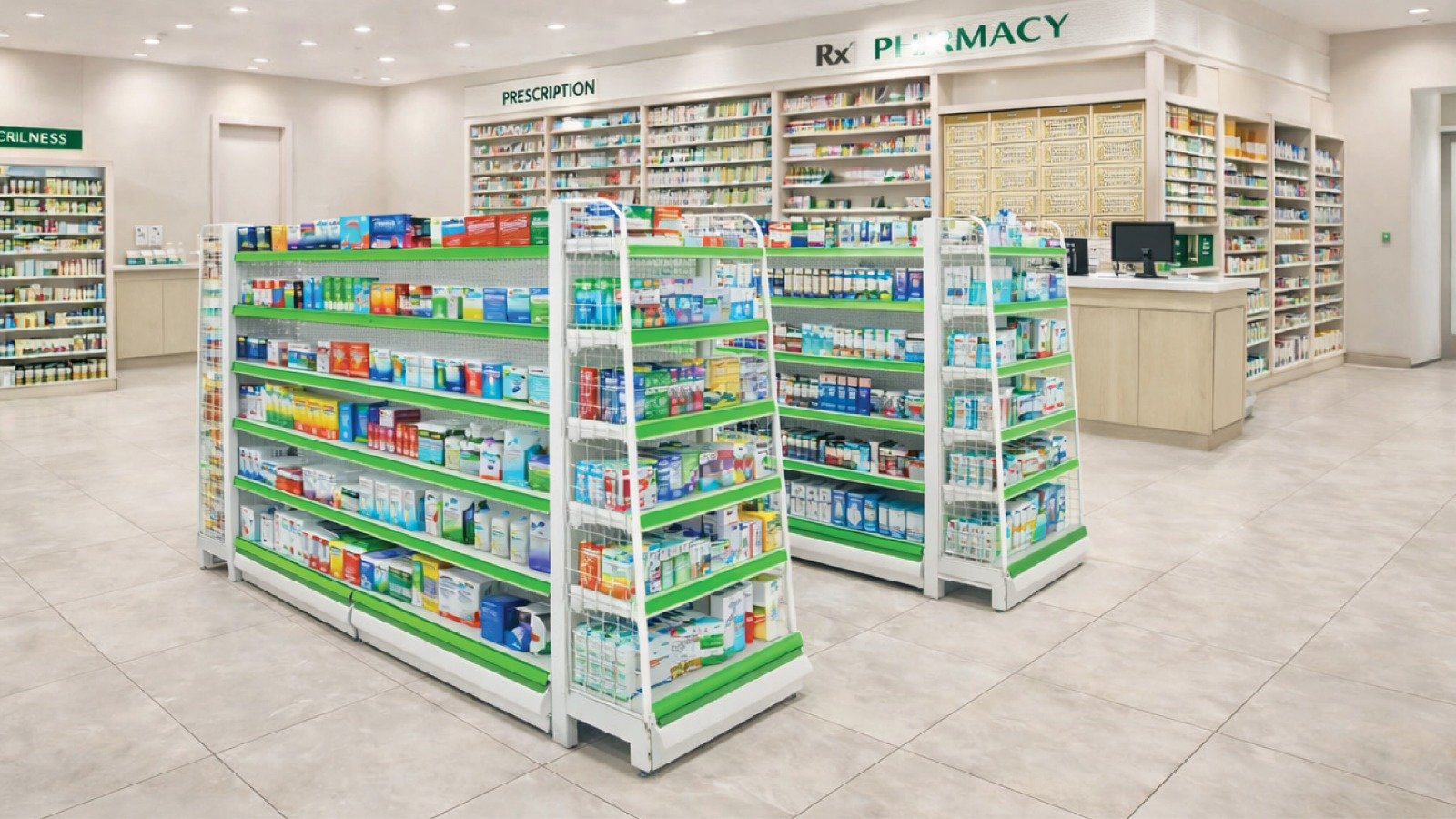 Clean, professional pharmacy racks that ensure organized medicine storage and high product visibility. Designed to enhance customer experience and workflow efficiency.