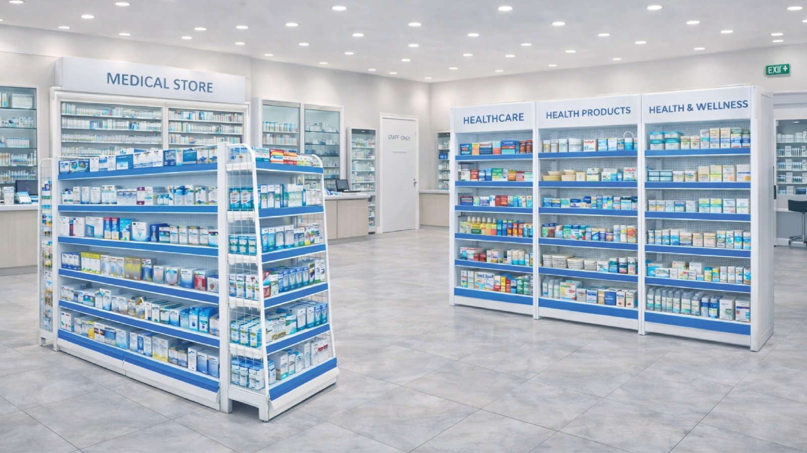 Professional medical store rack manufacturer – offering practical, easy-access shelving designed for better product organization.